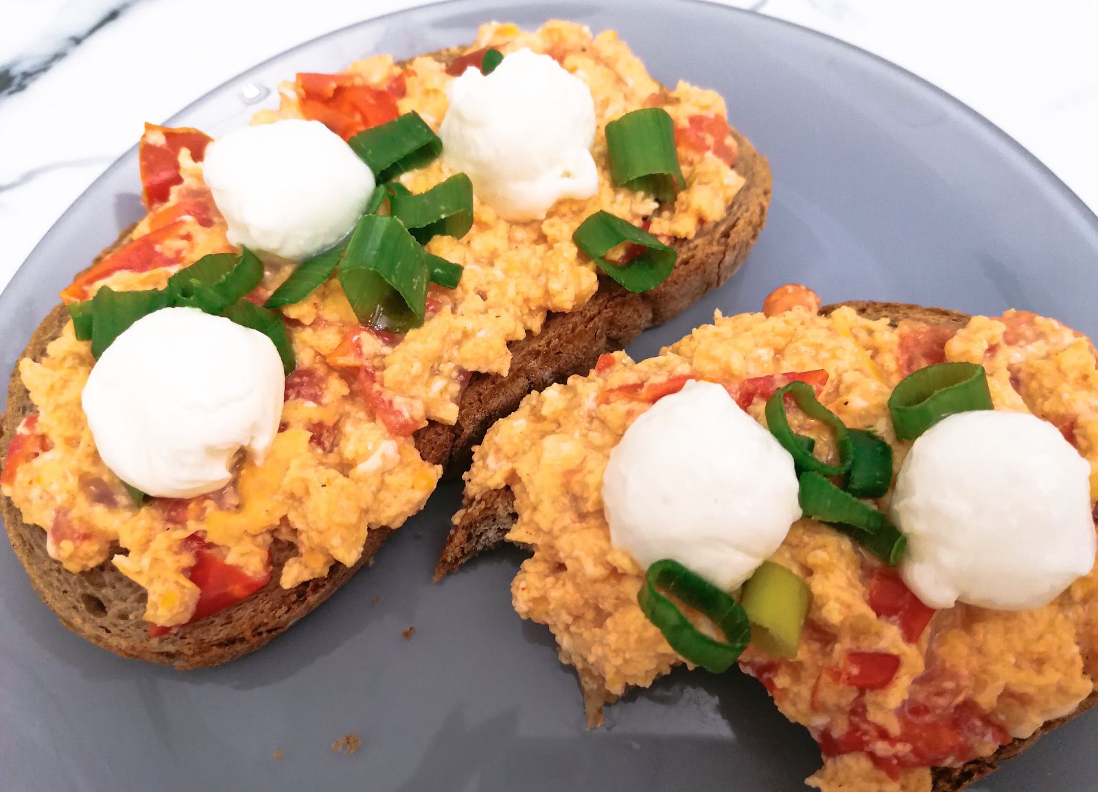 Vo väčšej miske vyšľaháme vajíčka spolu s mliekom, štipkou soli a nasekanou pažítkou.